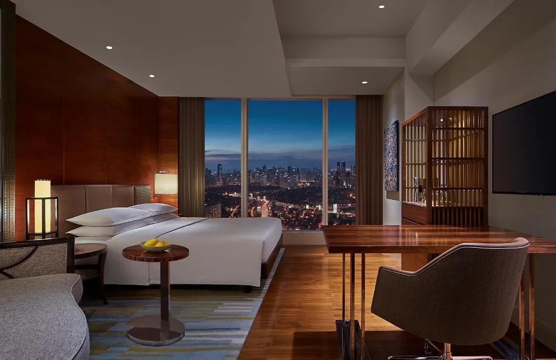Dieses Hotel Grand Hyatt Manila verfügt über 461 Zimmer, die mit einem Flachbildfernseher mit Satellitenkanälen sowie einem Mini-Bar-Kühlschrank ausgestattet sind. In diesen Zimmern gibt es eine Kaffee-/Teemaschine und einen Kühlschrank.